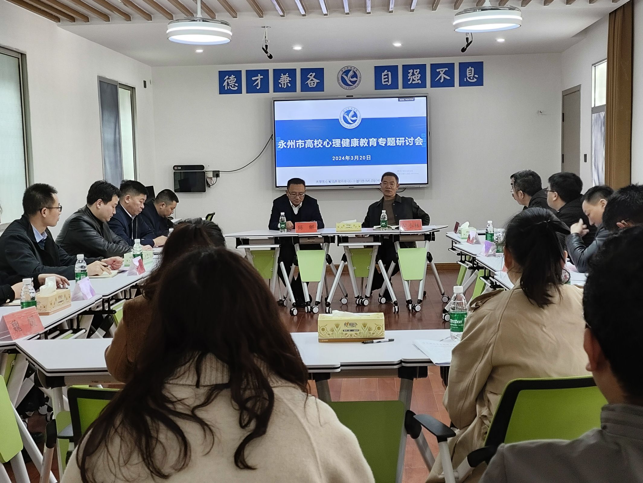 为深入贯彻落实2024年省教育厅心理健康教育工作推进会精神,高质量发展心理健康教育工作,3月20日下午,永州市高校心理健康教育工作研讨会在2026世界杯官方合作网站召开。省教育工委宣传部、省教育厅思政处一级调研员陈解出席研讨会,2026世界杯官方合作网站、永州职业技术学院、永州师范高等专科学校、湖南九嶷职业技术学院相关领导、老师参加,研讨会由2026世界杯官方合作网站党委委员、副校长、工会主席吴小林主持。
