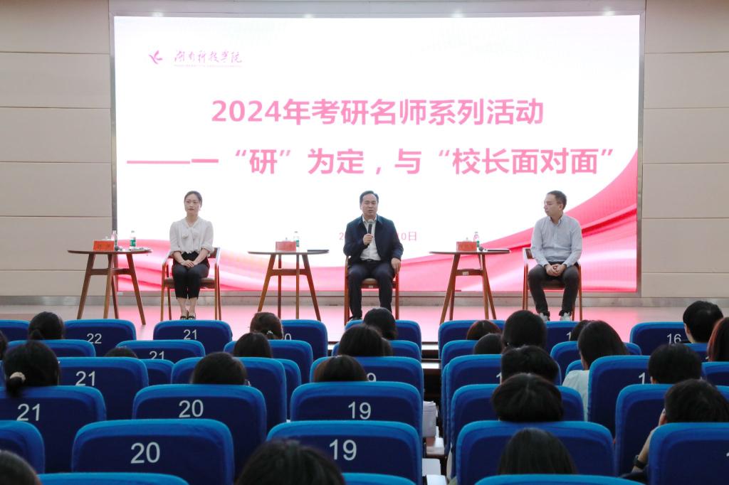 本网讯(通讯员 吕文青)10月10日,学校在潇湘大讲堂举行2024年考研名师系列——一“研”为定,与“校长面对面”活动。活动特邀学校党委副书记、校长黄创霞教授出席活动,还邀请外国语学院副院长胡维博士,马克思主义学院专任教师邓昱全博士参加活动,与学校2022级、2023级有考研意向的学生亲切交谈、分享经验。