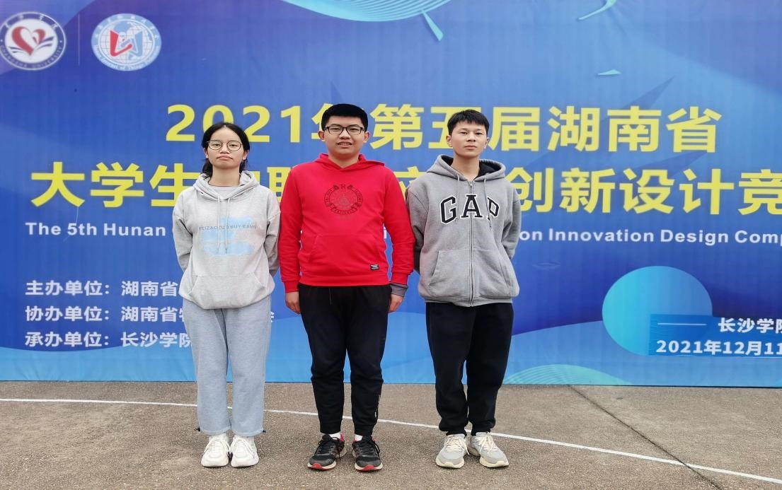 12月11日—12日,2021年(第五届)湖南省大学生物联网应用创新设计竞赛在长沙举行,本次竞赛由湖南省教育厅主办,湖南省物联网学会协办,长沙学院承办,共有来自国防科学技术大学、中南大学、湖南大学等高校的150余支队伍参赛。世界杯官网信息工程学院唐亚纯、李娅菲老师指导的,由罗颂、陈艳晴、刘成三人组成的团队,在此次比赛中经过激烈的角逐,最终脱颖而出,获得了挑战赛一等奖第一名的佳绩。
