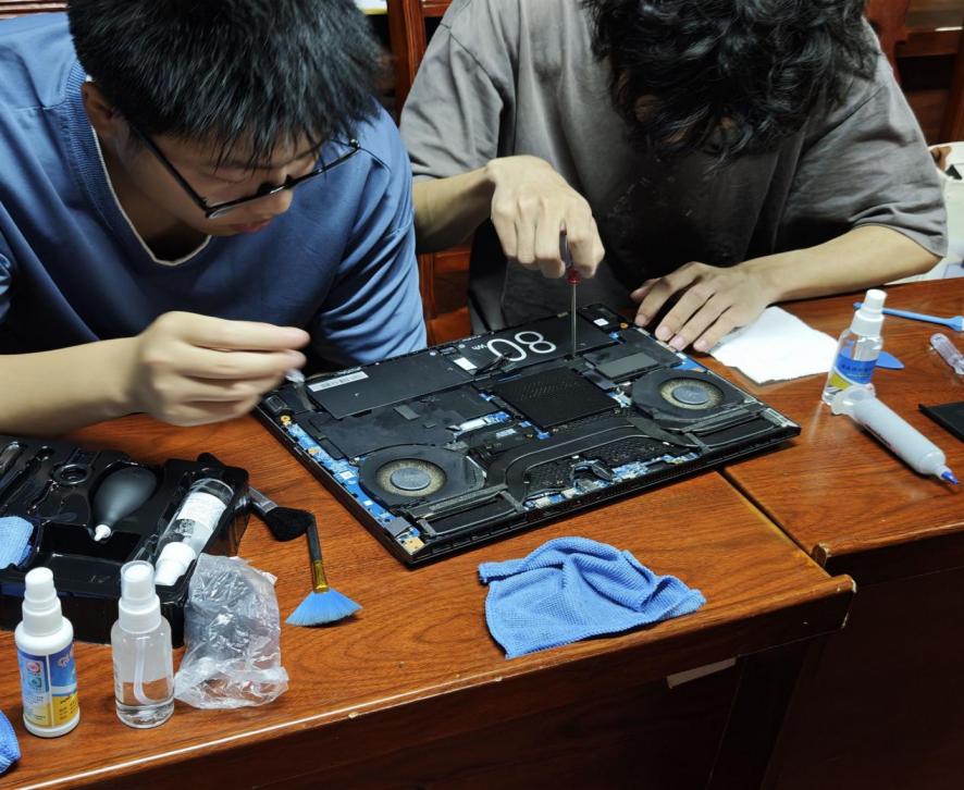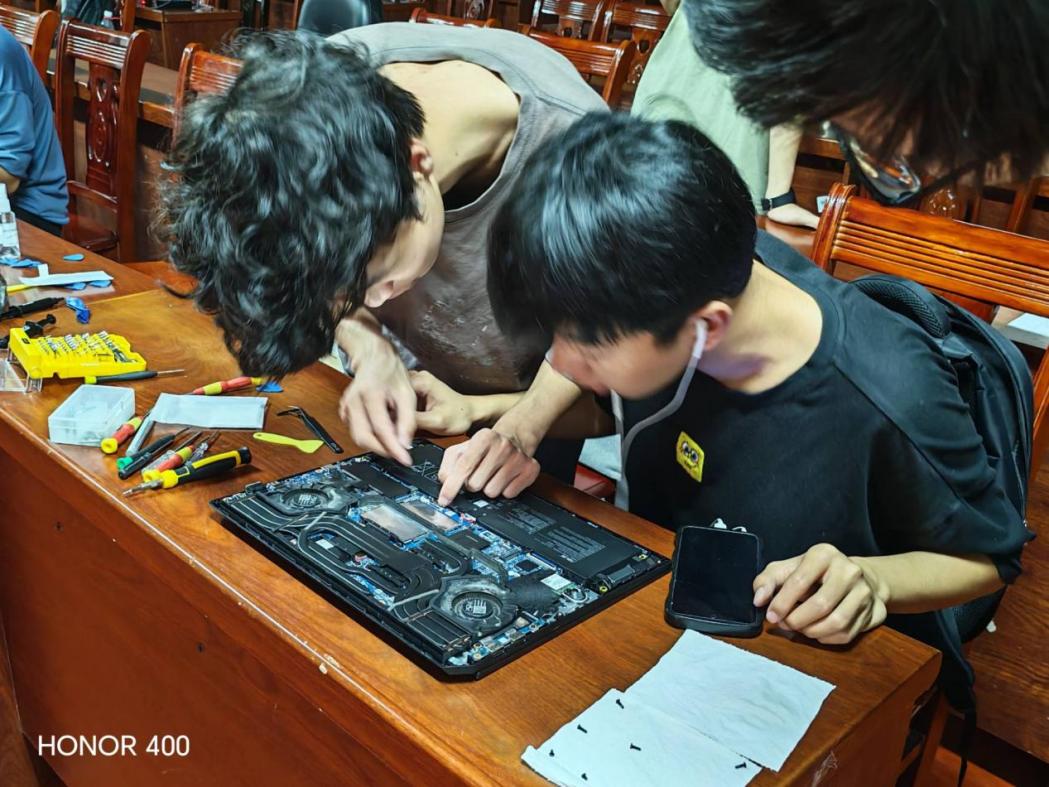 活动现场,志愿者们将各类专业检测工具、维修配件摆放整齐,以饱满的热情迎接前来咨询、维修的同学。面对大家带来的各类故障电脑,志愿者们认真做好信息登记,细致排查问题根源,针对电脑运行卡顿、系统运行异常、设备散热不畅、软件故障等常见问题,采用两人一组的协作模式,分工明确、各司其职,有条不紊地开展维修工作。现场还有不少同学驻足围观,主动学习基础的电脑维护知识,形成了浓厚的学习交流氛围。在维修服务的同时,志愿者们还化身科普宣传员,耐心向在场同学讲解电脑病毒防范、系统日常优化、重要文件备份、硬件保养等实用技巧,引导大家养成科学、规范的用机习惯,贴心又专业的服务得到了现场同学的一致好评与广泛认可。