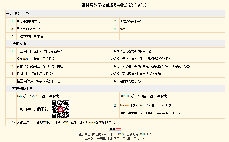 (4)用户服务导航。用户可免认证访问导航系统,其中提供各种使用手册的下载、业务应用平台的公布、客户端的发布、认证所需工具的下载等服务信息。