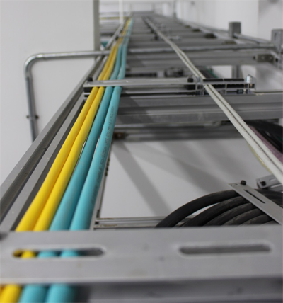 据世界杯官网建筑特征,中心机房采用“轻重分离、上走线、侧送风、智能化、低能耗、一体化管理”的思路进行设计。从承重方面考虑,一楼为配电中心,二楼分别为交换中心和数据中心,通过双层开放式桥架将线路分别引入到相应的机柜。