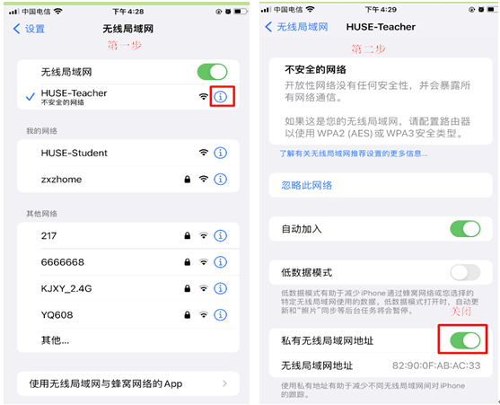 第二步,关闭私有无线局域网地址,获得真正MAC地址。