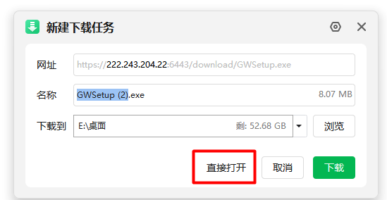 5、下载完成后,点击“打开”自动运行安装或者找到已下载的“GWSetup.exe”文件,双击运行安装。