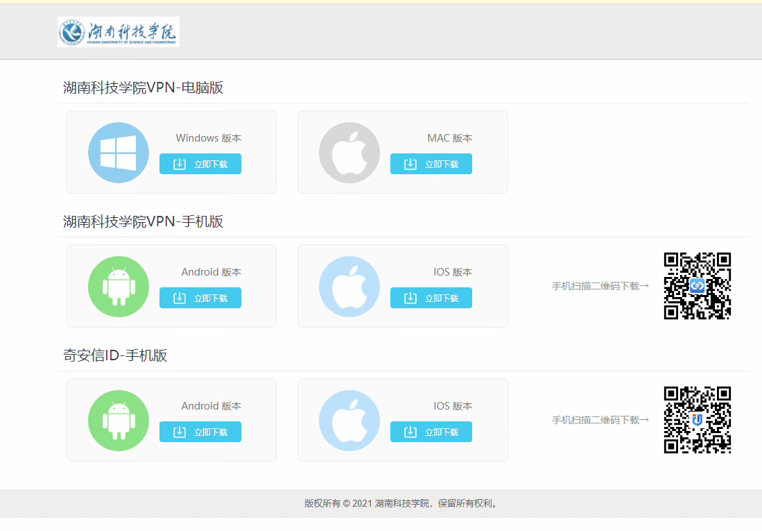 3、进入VPN下载页面,如下图所示。根据用户当前系统下载相应的安装包。