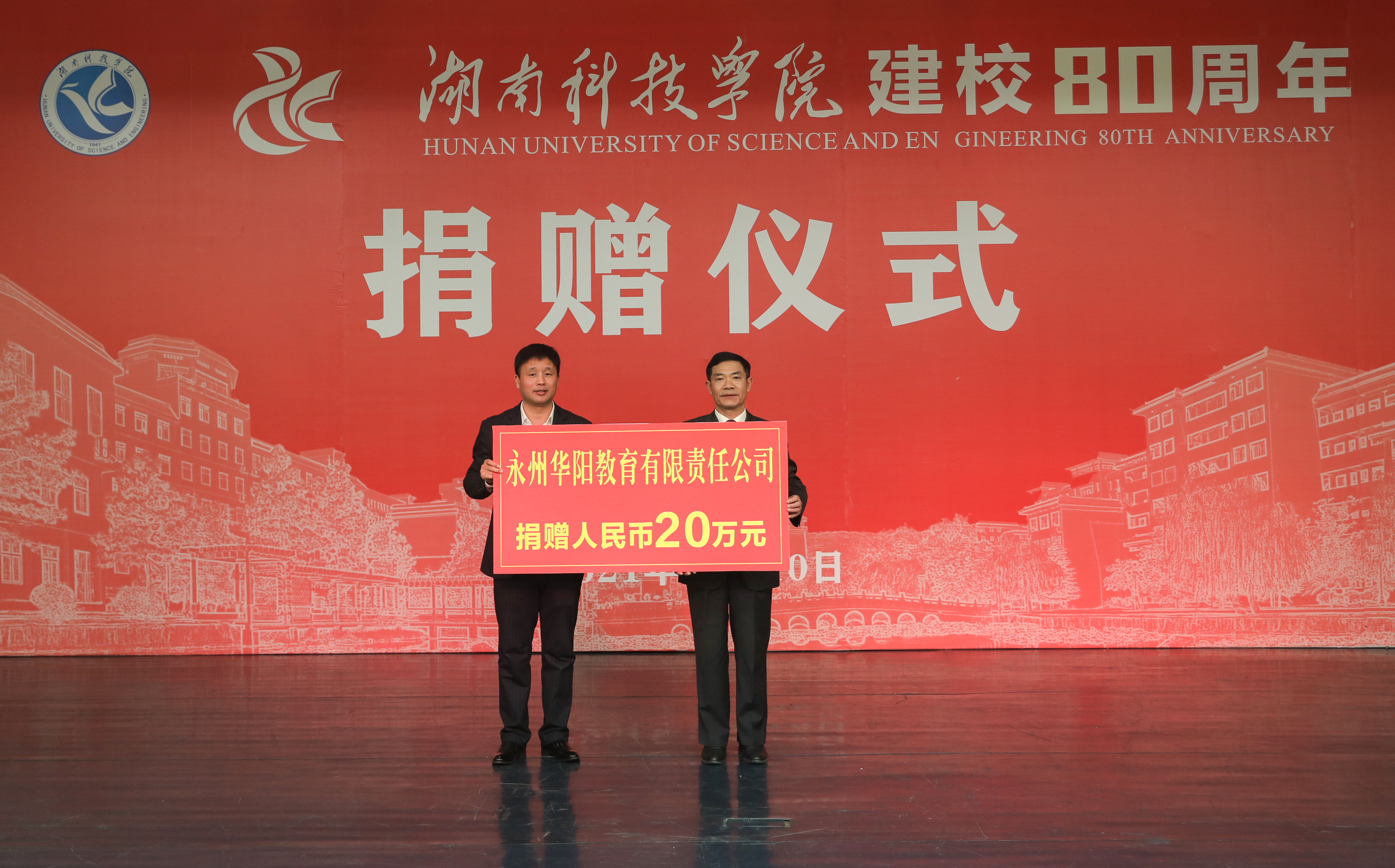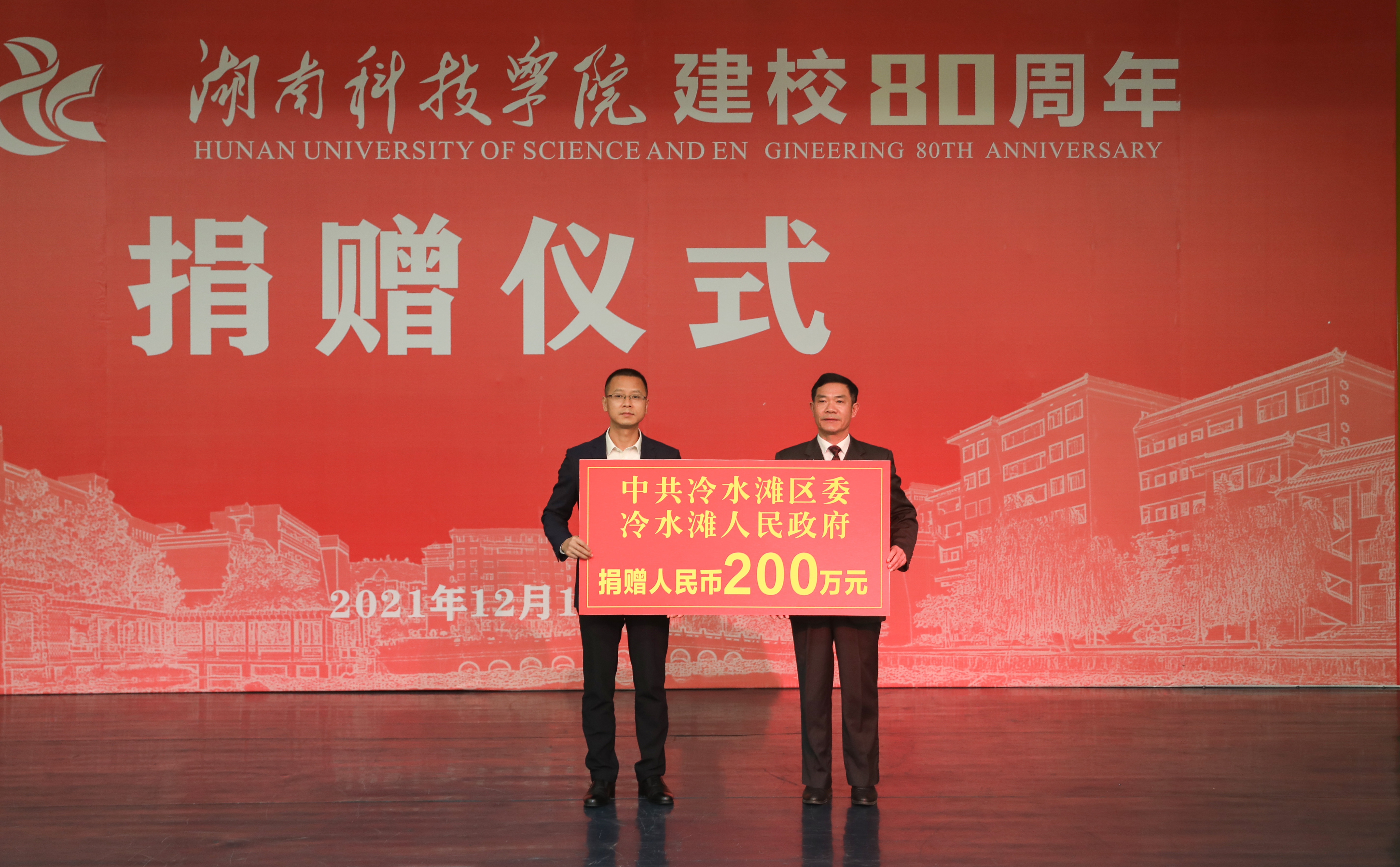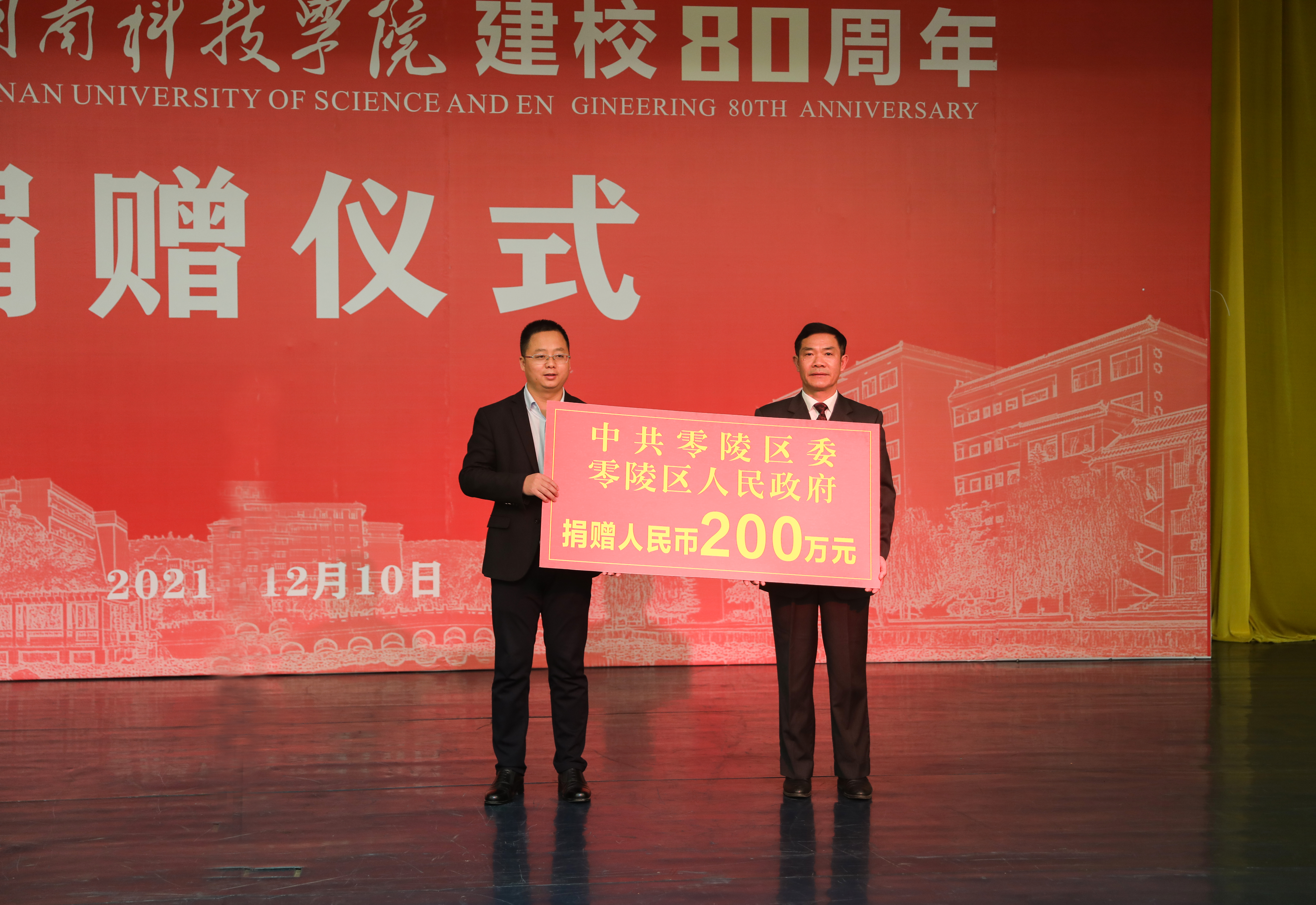 本网讯(记者 唐敏杰)12月10日下午,世界杯官网举行建校八十周年捐赠仪式,地方政府、社会组织和友好人士及校友为学校捐赠物资和现金。零陵区委副书记、区长龙亮,冷水滩区委副书记、区长李辉等地方政府代表,永州科隆房地产开发有限公司负责人周祖钦、永州华阳教育有限责任公司董事长唐湘旗等社会组织和友好人士代表,化学80届张亚红、中文86届贺定中等校友代表,学校党委副书记、校长李钢,党委副书记宋宏福,党委委员、副校长吴小林,副校长郑银芳出席仪式。仪式由宋宏福主持。