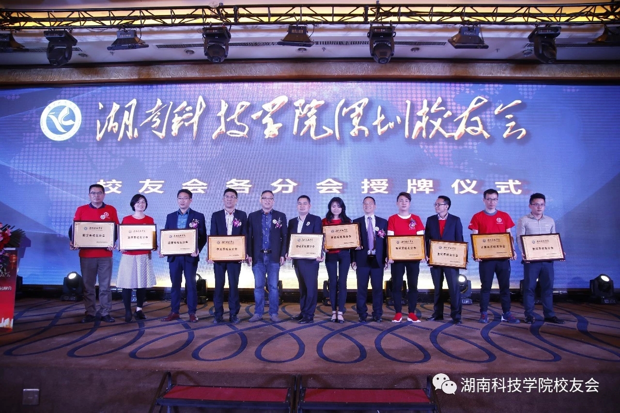 曾宝成为深圳校友会及新任会长段小燕授牌,校领导分别为新一届校友会理事会成员授牌。