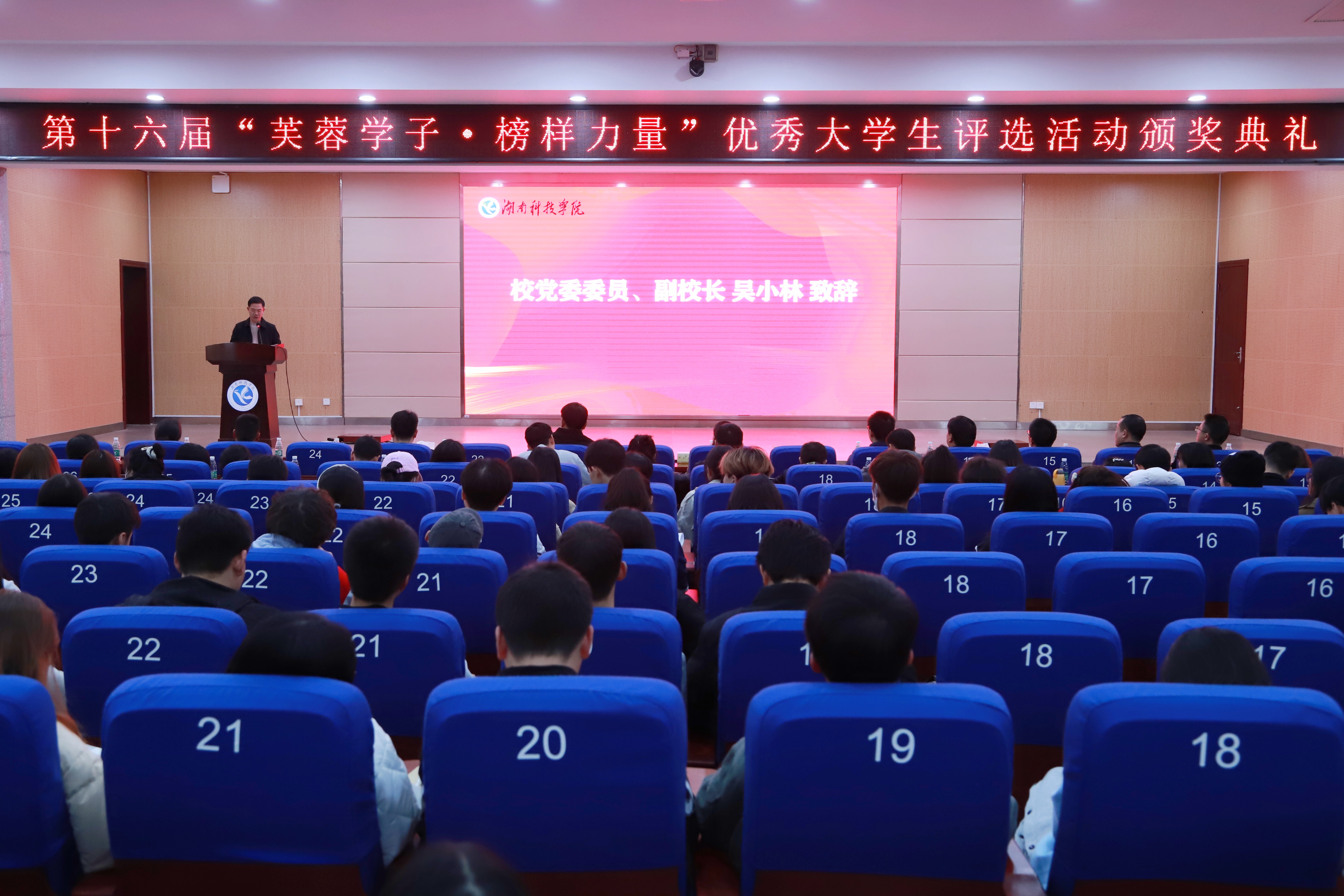 本网讯(记者 龙雨帆 张艾琳)时代呼唤英才,榜样引领未来。11月30日晚,世界杯官网第十六届“芙蓉学子·榜样力量”优秀大学生颁奖典礼在潇湘大讲堂隆重举行。校党委委员、副校长吴小林,湖南中烟工业有限责任公司营销中心湖南销区永州业务经理李小伍,党委学生工作部部长唐华山,校团委书记万李等出席典礼。各教学学院党总支副书记、团总支书记及第六期大骨干培训班全体学员共800余人参加活动。