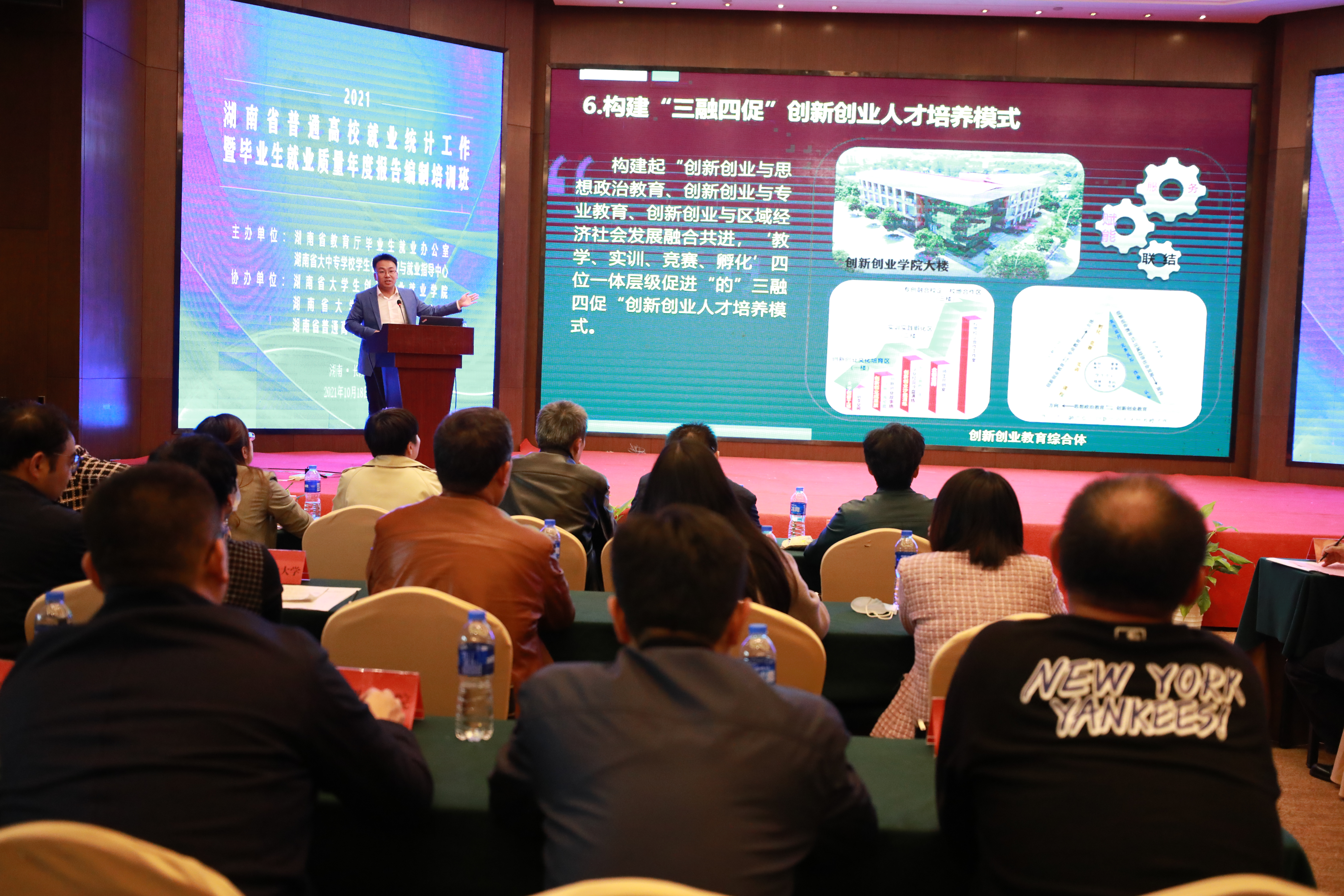 本网讯 10月18日,2021年湖南省普通高校就业统计工作暨毕业生就业质量年度报告编制培训班在长沙举行。全省100多所高校的就业工作相关负责人参加了会议。世界杯官网应邀做了经验交流发言。
