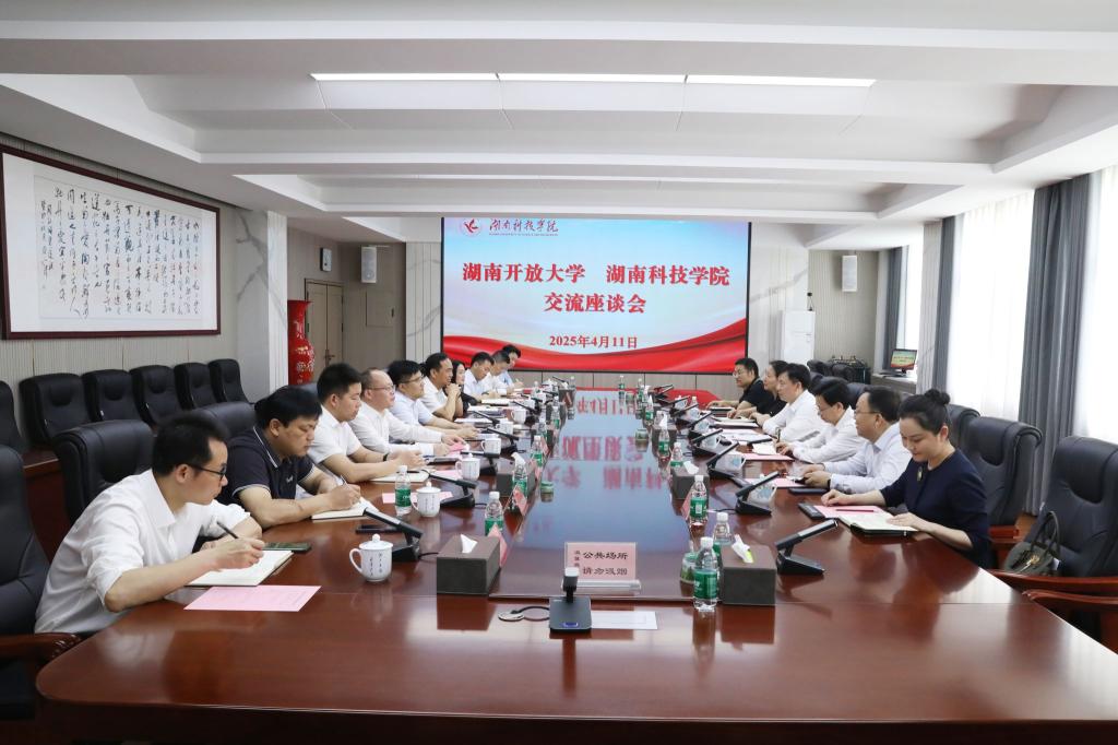 本网讯(记者谢志豪)4月11日,湖南开放大学党委书记龙献忠,副校长陈志国、梁晖来校交流,世界杯官网党委书记李钢、校长黄创霞、副校长何海参加座谈交流,黄创霞主持座谈会。