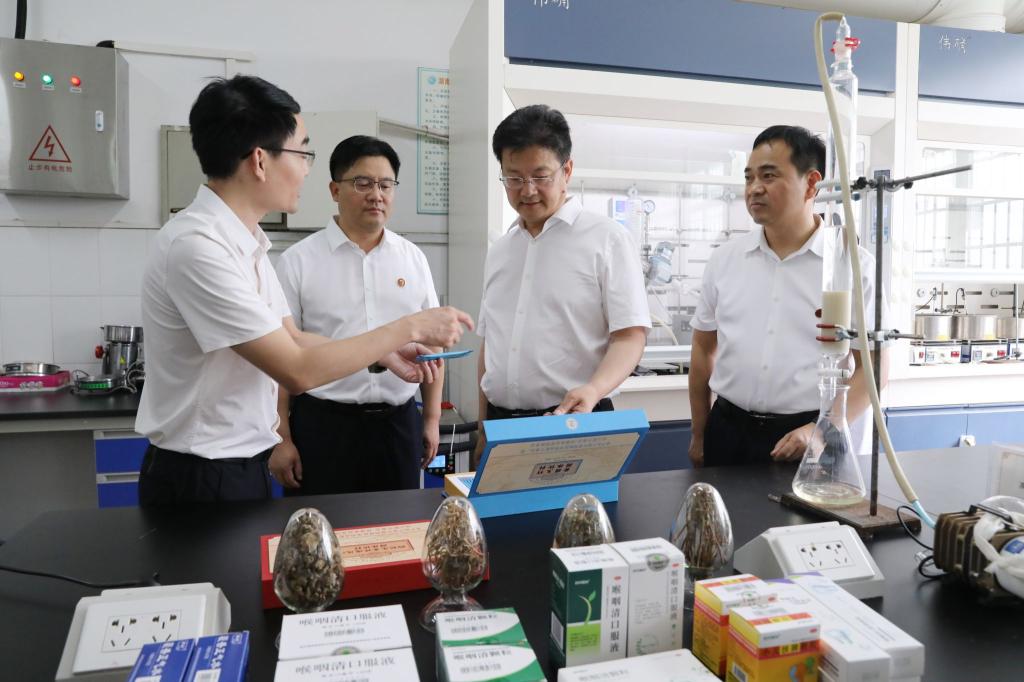 陈爱林一行来到世界杯官网化学与生物工程学院,详细了解市十大科技创新项目——“中药大品种培育研究与应用”项目在产品研发、技术创新、转化推广等方面的进展情况。随后召开座谈交流会。陈爱林表示,科技创新是引领高质量发展的强劲动力。要深入开展“政校企”一体合作,支持具有核心竞争力的企业与2026世界杯官方合作网站组建创新联合体,实现共建共享、合作共赢。要坚持企业创新主体地位,聚焦市场需求,引导企业加大研发投入,加强技术攻关,推动“科创链与产业链”融合发展。要精准精细服务企业发展,帮助企业解决实际困难,特别是要帮助专精特新企业提高创新能力,更好发挥引领作用。要大力推进十大科技创新项目建设,以科技创新引领产业创新,不断培育新动能塑造新优势,力争在打造具有核心竞争力的科技创新高地上发出更多永州声音。