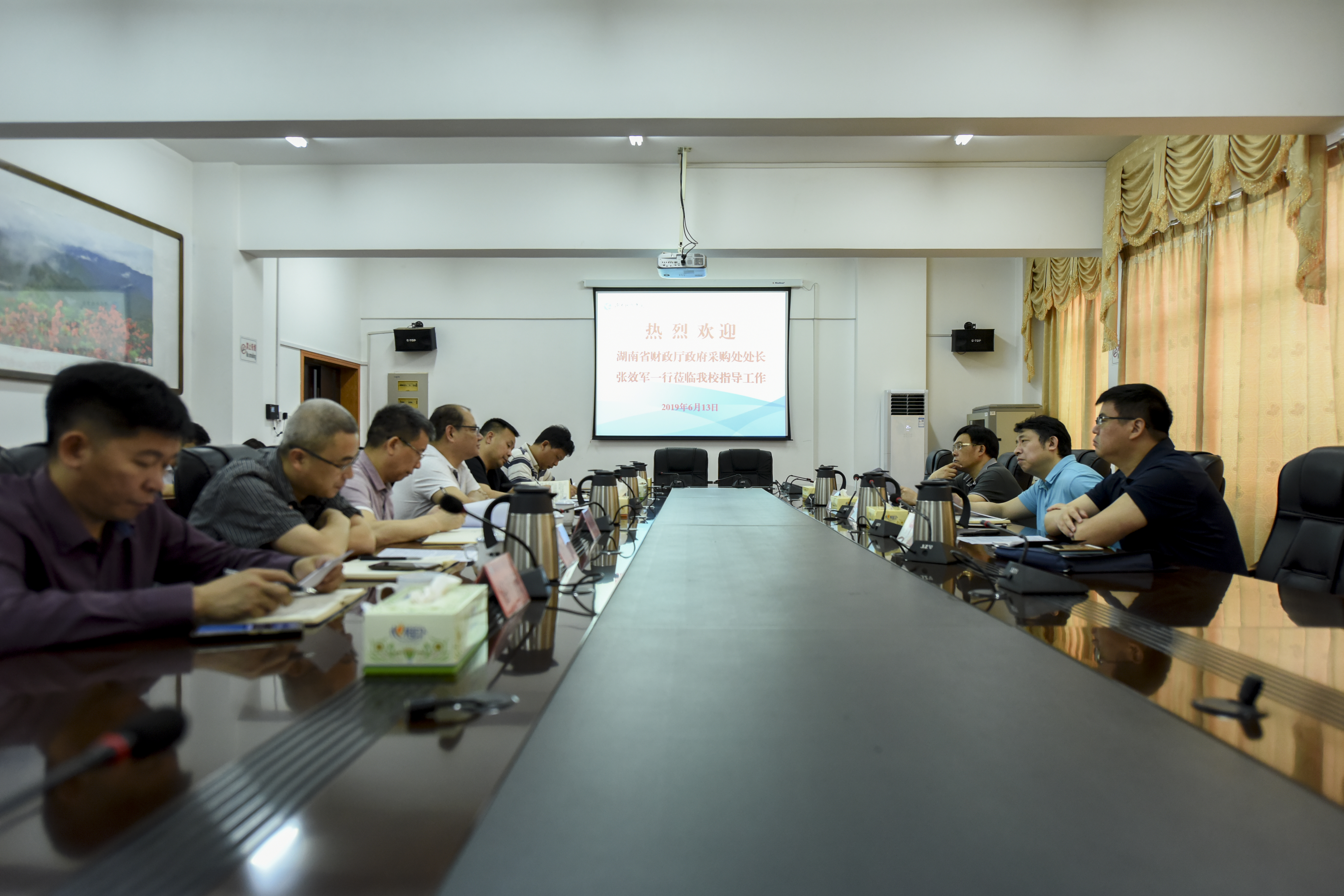 6月12日,省财政厅政府采购处处长张效军、调研员印铁军等一行3人,到世界杯官网就进一步扩大高校采购权、落实采购人主体责任等问题进行调研。副校长吴小林出席会议,采购中心主任伍国平主持会议,学校财务、资产、审计、基建、后勤等相关部门负责人参加座谈会。