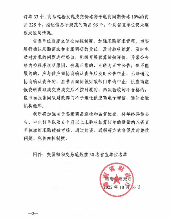 转发:湖南省财政厅关于省直单位电子卖场交易情况的通报