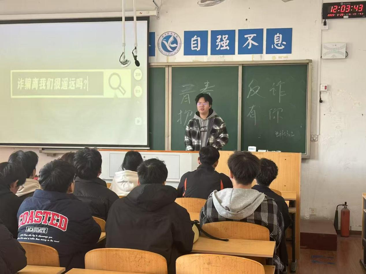 主题班会通过典型案例警示通报、诈骗手段解析、互动情景模拟等形式,用身边事教育身边人,帮助同学们深入了解电信诈骗的惯用伎俩和危害后果,帮助掌握实用的防骗技巧,增强自我保护意识,让青春在安全的校园环境中绽放光彩。