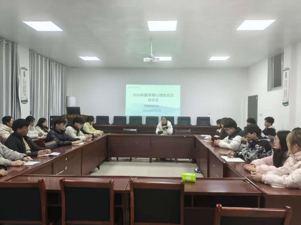 会议明确了心理信息员在学院心理健康工作体系中的核心作用,强调其作为一线观察员和信息联络员的重要职责,既要密切关注全体学生心理状态、精准捕捉情绪波动,也要搭建学生与学院间的高效沟通桥梁,打通心理健康服务“最后一公里“”。结合学院学科特点及学生学业压力实际,会议部署春季学期心理健康工作重点,明确要求全体心理信息员重点关注学生心理动态,做好各类学生心理状态的排查与关注工作。会议同时要求,心理信息员通过宿舍走访、日常谈心、细节观察等方式,及时发现学生心理异常信号,严格落实信息报告制度,做到早发现、早沟通、早干预。