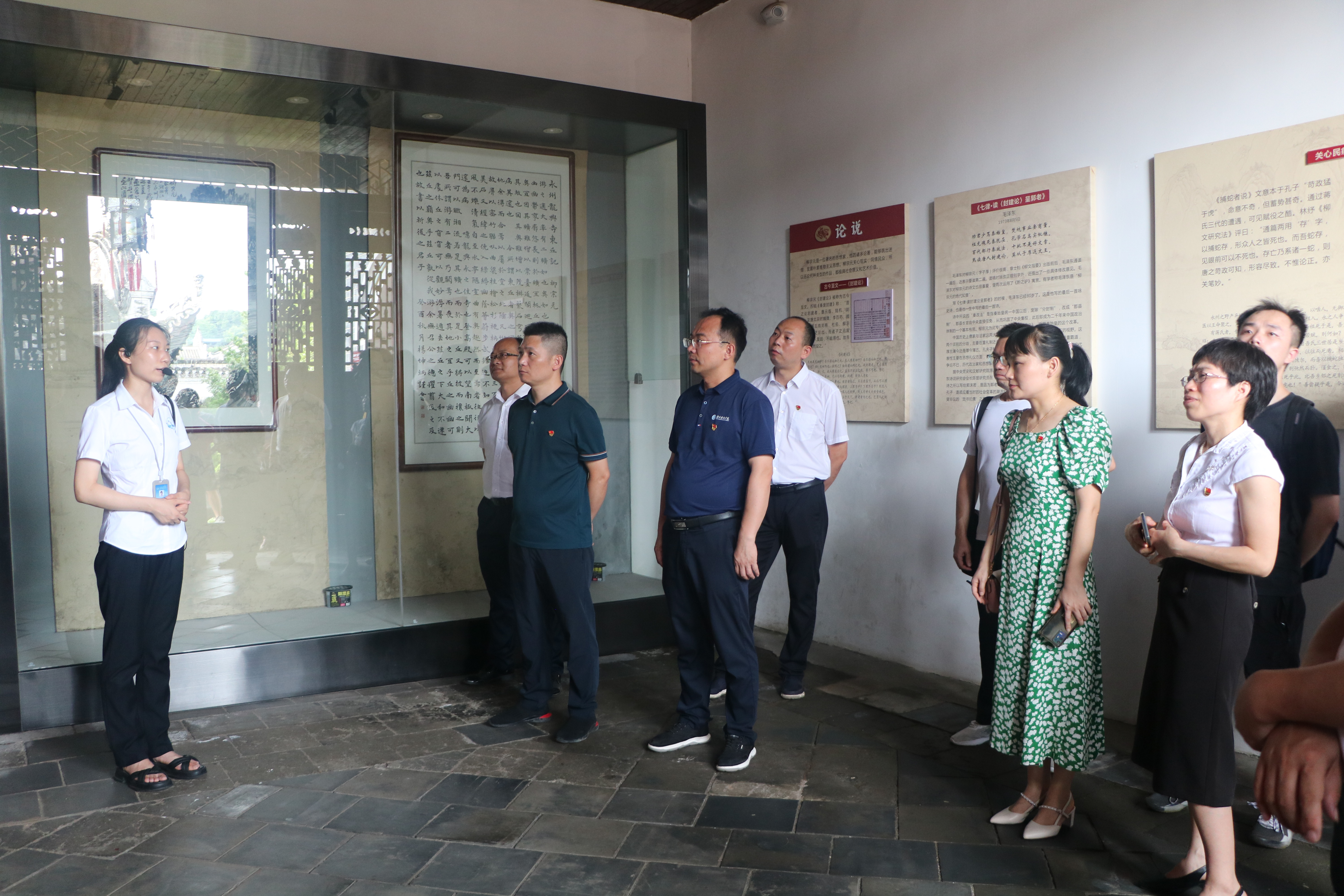 在讲解员的引领下,全体党员依次参观了殿内碑碣所刻文物珍品和柳宗元廉政思想展厅,详细了解了柳宗元生平事迹,深刻感受到了柳宗元高尚廉洁的品格和“吏为民役”的民本思想。通过学习先贤,警策身心,从传统文化中汲取清正廉洁正能量。