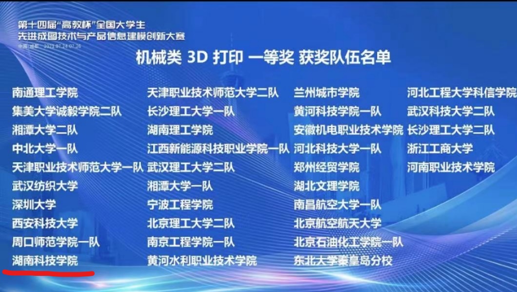 2021年7月26日,第十四届“高教杯”全国大学生先进成图技术与产品信息建模创新大赛在西南交通大学落下帷幕,经过十余天的激烈角逐,世界杯官网智能制造学院2019级机械专业学生梁许健、谢凌云,在指导老师罗哲、顾晓猛、夏铁军、夏余平等的指导下最终脱颖而出,荣获机械类3D打印全国一等奖,取得了世界杯官网在该类赛事上的最高奖项。