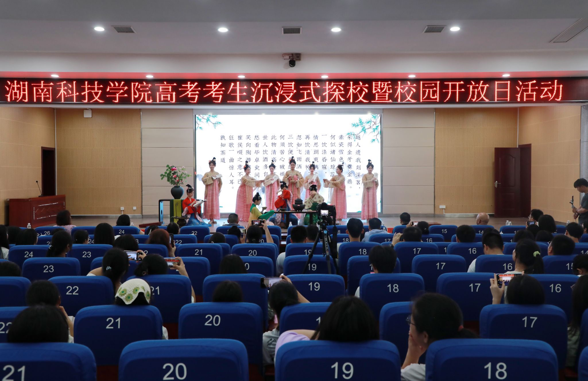 上午八点,来自四面八方的考生和家长,迎着和煦的阳光,络绎不绝地进入校园,开启校园环游。各教学学院通过丰富多样的形式介绍了专业特色、课程设置、培养模式等。学校还特别开放了砖石质文物智慧化保护利用技术湖南省重点实验室、工程训练中心、湘南传统建筑营造技艺工作坊、国家级众创空间、航空模拟舱等供考生和家长参观。现场,大家还沉浸式体验了女书文化和古琴文化,参观了学生宿舍、打卡了校园美食。
