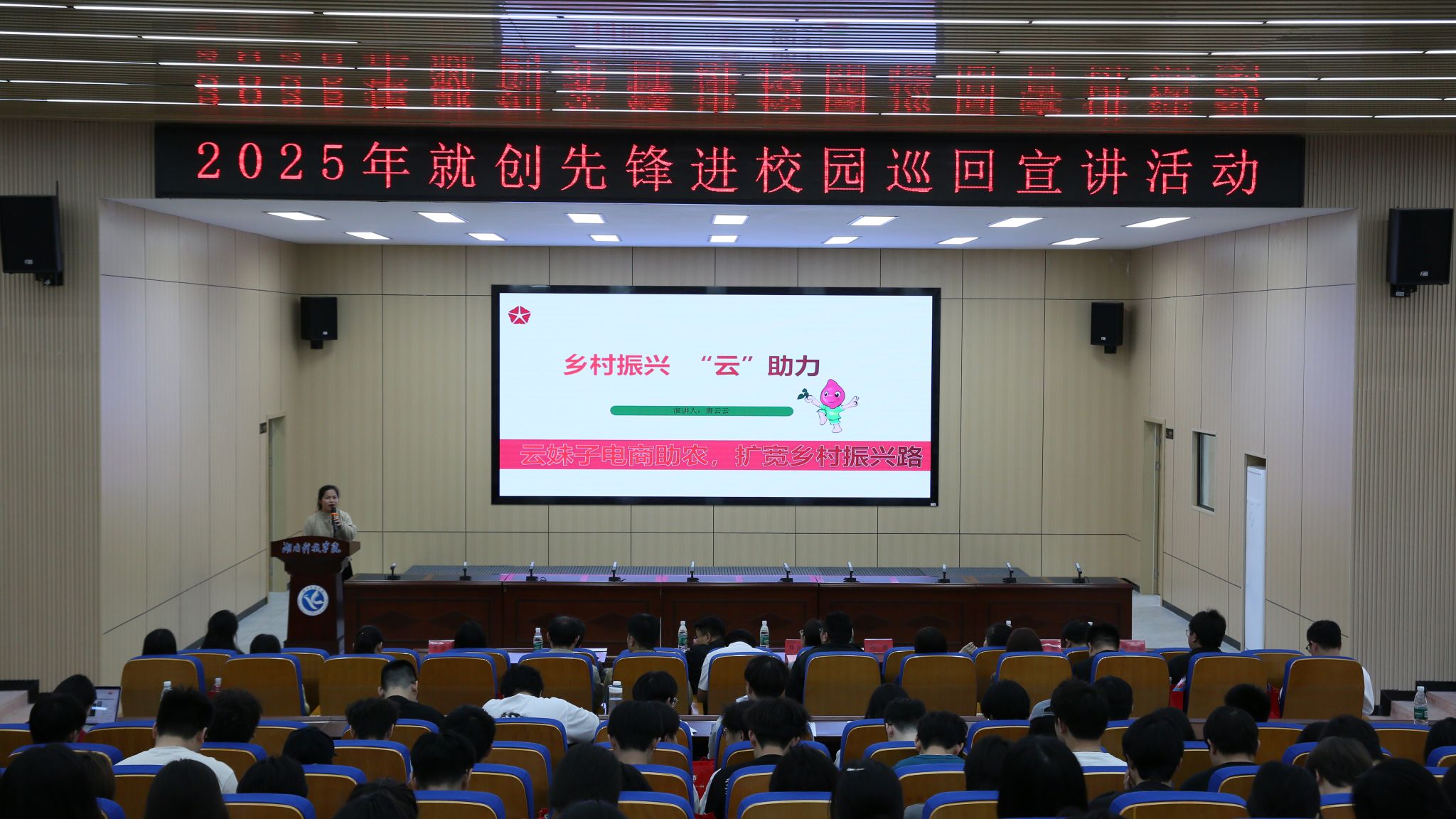 本网讯(通讯员 周忠夏)4月25日,由湖南省人社厅主办,湖南省人才发展集团、世界杯官网联合承办的“就创先锋进校园”宣讲暨创客训练营活动成功举办。湖南省人才发展集团党委委员、副总经理薛国华,副校长郑银芳出席活动,来自各教学学院的300余名师生参加。
