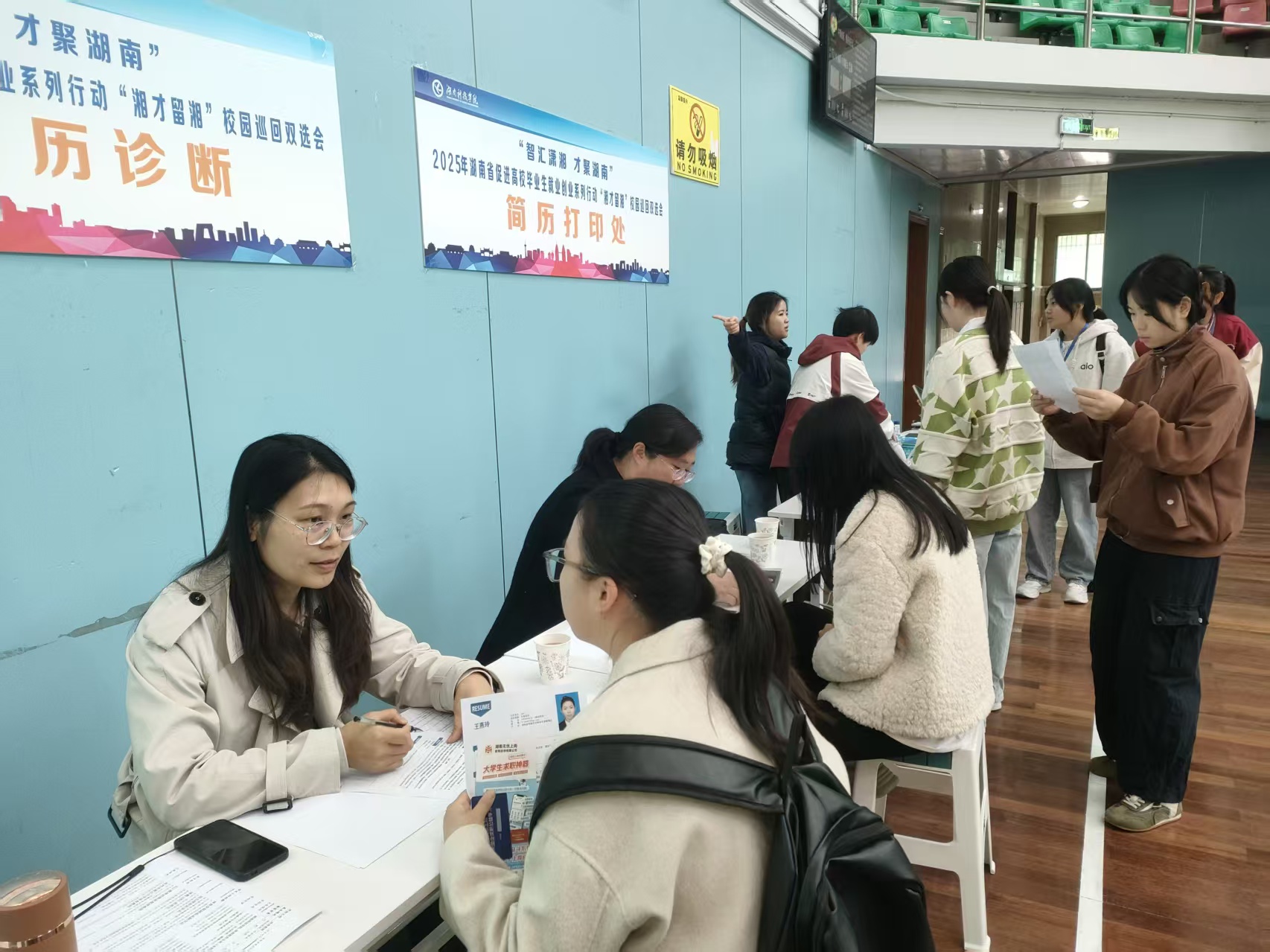 众多毕业生手持简历与用人单位进行积极交流,现场气氛热烈。同时,为给毕业生提供全方位支持,现场特设简历诊断、政策咨询、就业指导、医疗服务等多个功能区,以“一站式”就业服务助力毕业生提升求职竞争力。